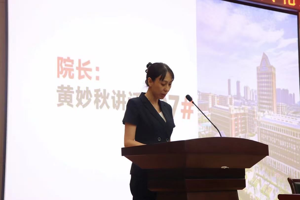 学院党委书记陈宇致辞,他代表学院向2025级全体新生表示热烈的欢迎,介绍了学院的发展历程、专业设置和教师团队等基本情况,勉励大家要学会感恩、珍惜大学时光、做好人生规划。教师代表江姗珊分享了学院在音乐与舞蹈领域的专业优势与教学成果,叮嘱新生珍惜大学求学时光,尽早规划艺术人生,在专业学习中锤炼本领。本科新生代表张俊杰、研究生新生代表张紫艳都表达了对大学生活的憧憬,坚定了深耕专业、逐梦艺术的决心。最后,院长黄妙秋对新生提出了新要求,她勉励新生珍惜宝贵求学时光,在提升专业素养的同时锤炼综合能力,努力成长为德才兼备、勇于开拓的新时代人才,为艺术事业发展注入青春力量。