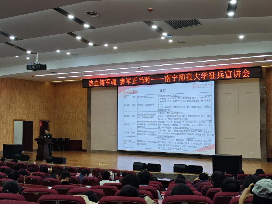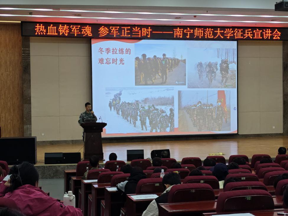 11月18日下午,学校征兵宣讲会在武鸣校区图书馆报告厅内举行。音乐与舞蹈学院积极响应号召,组织怀揣军旅梦想的学生到场参加。