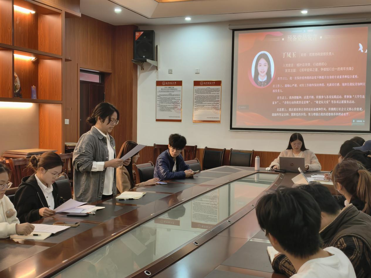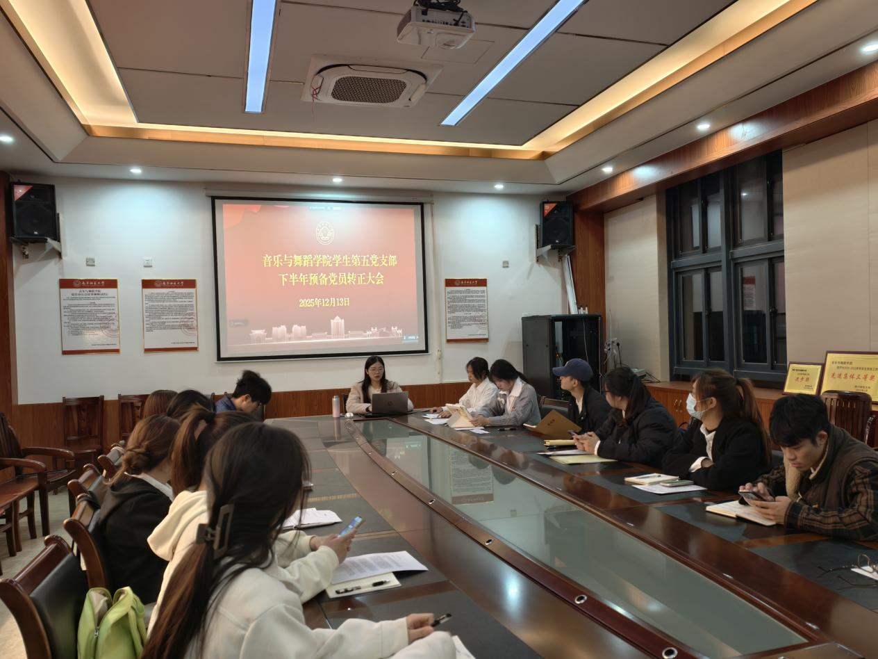 近日,音乐与舞蹈学院学生第五党支部在音舞楼A3015会议室召开党员大会,讨论接收预备党员及预备党员转正事宜。会议由党支部书记盘小芳老师主持。